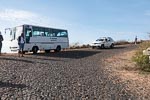 I spent the day still recovering from yesterdays food poisoning episode so did not participate in todays tour. The ship docked at Port Grande in the city of Mindelo on the island of San Vincente one of 10 volcanic islands that make up the country of Cape Verde, located in the central Atlantic Ocean. From Nina's description the town still had an African feel, with lots of dark skinned people wearing wonderful brightly coloured clothes. There was a general more prosperous feel probably coming from the lack of rubbish and better maintained buildings and roadways. A wonderful example of the effort that the island community has put into building things is the top 5 km section of the road to Mount Verde at over 2500ft. This road is made of hand laid flat stones, providing a relative flat driving surface and is in good conditions. However as a passenger trying to take photos from the bus is was extremely bumpy. We could not find out why this construction technique was used as a hot-mix road would have been a lot less work. See the photo labelled "Rocky Road".