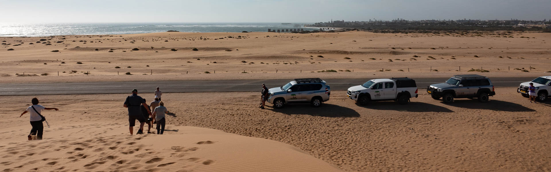 Journal entry for Friday 3rd Apr, 2026 (day 44, miles 0)This morning we pulled into the harbor of a town called Walvis Bay which is the main sea port for Namibia. It has a long history of contact with Europeans dating back to 1485 when nearby Cape Cross was visited by Diogo Cao and 1487 when Bartolomeu Dias anchored in Walvis Bay itself. Interestingly while Walvis Bay is one of the few places on the Namibian coast that provides good anchorage for ships it has no natural water supply even today. That handicap explains the near by town of Swakopmund which sits at the mouth of the similarly named Swakopmund River and hence has a water supply but does not have any form of protected acnhorage for ships. So the two towns are somewhat symbiotic. Swakopmund provides the water and Walvis Bay provides a lifeline to the rest of the world. Incidentally the names reflect their earlier colonial history with Walvis Bay being English and Swakopmund being German. Tourism is the main business of both towns.s