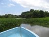 One of the high points of these boat rides was a visit to La isla de la monkeys - you got it the island of the monkeys. About 20 yards across and covered with trees the island seemed to have 6-12 monkeys. After a number of aborted efforts our boat approached the island and to our surprise a monkey boarded our boat. Once on board it headed straight for Nina's pack which I was fortunate enough to rescue. However the boat mans pack was not so lucky. The monkey got into it and into the man's lunch of chicken and rice salad. The monkey - named Lola, even though it was obviously a male - did not at first seem to like the chicken but was quite partial to the rice. We spent the next 20 minutes with Lola as our companion while he ate all of the rice salad. Once the salad was finished he thoroughly searched the bag for more delicacies. Finding no new treats, he sampled the chicken and then reluctantly departed, with some encouragement from a bucket of water thrown by the boat man.