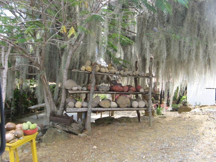 After an internet stop and some tricky navigation through San Gil we were on our way to Barichara over even narrower roads. Barichara is a small village, with white washed buildings and narrow cobbled streets and the most beautiful main plaza and two wonderful stone churches. We wandered around the streets, had lunch and then decided to go to an even smaller village called Guane, if we could only find the way. A quick conversation with a handy member of Policia Nacional had us on our way and traversing still narrower roads.