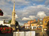 So when we got to the town of Banbury this afternoon we were interested to find that this nursery rhyme is well established in the town. There is a large statue of the lady on the horse with bells on her toes, the nursery rhyme is inscribed on the statue. Various plaques explain the meaning of cock horse (it is one of the children's toy horses - a horse head attached to a stick ). We even learned that Banbury has a Cock Horse Festival